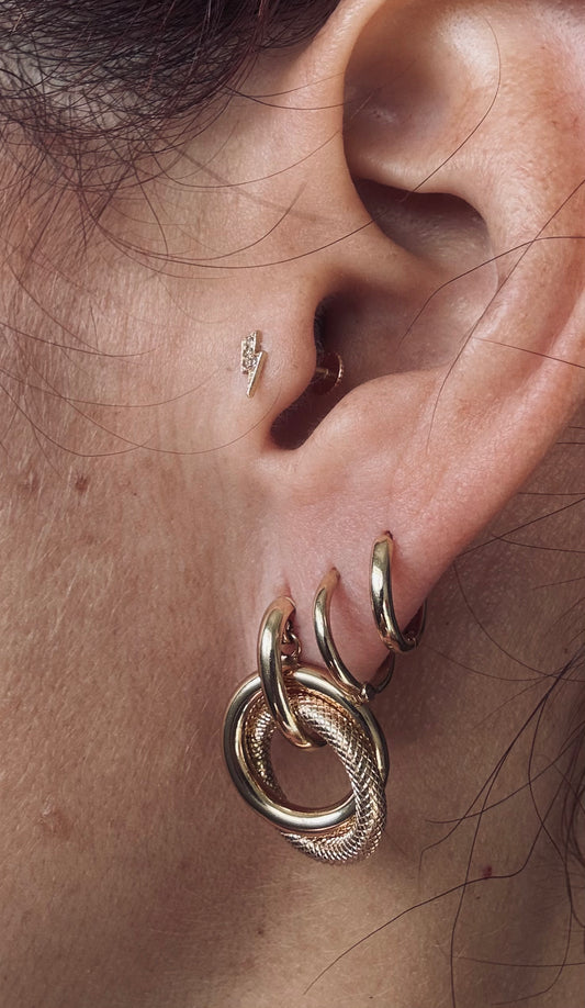 14K Solid Gold Double Interlocked Eternity Circle of Love Hoop Stud